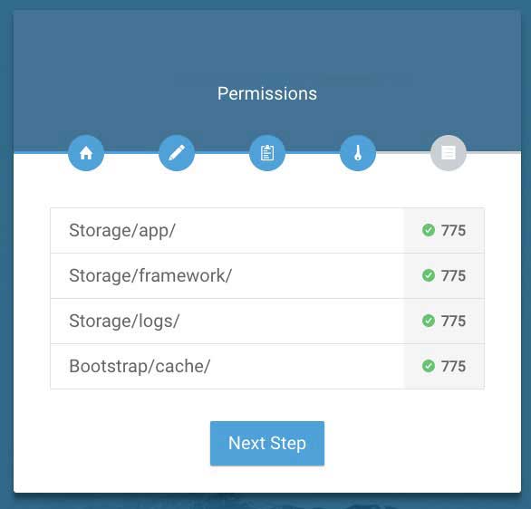 After successfully enabling and installing all required PHP extensions, next step is to set the appropriate permissions for some system folders. All directories listed on step 4 has to be writable by the application, as it is displayed on the following picture.
